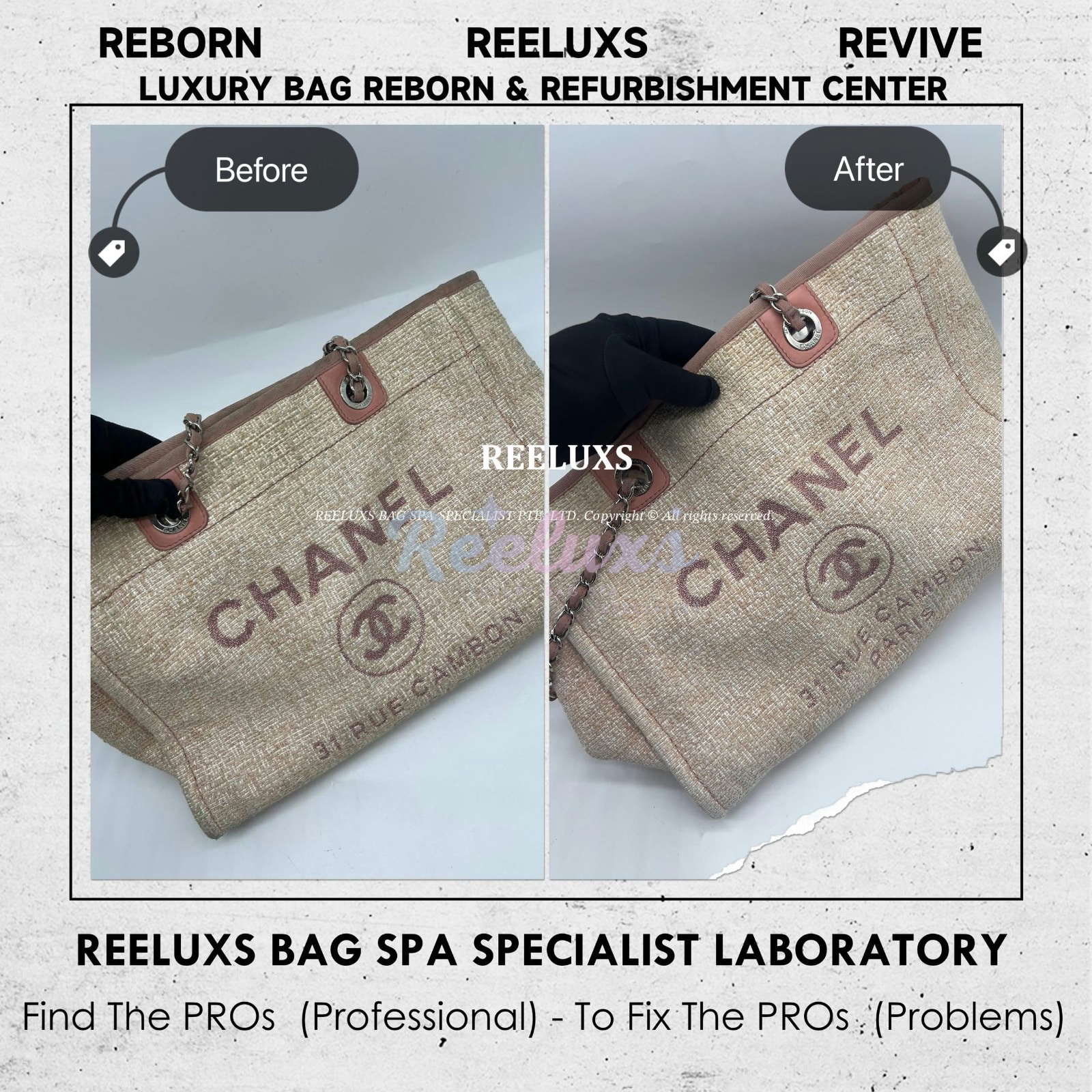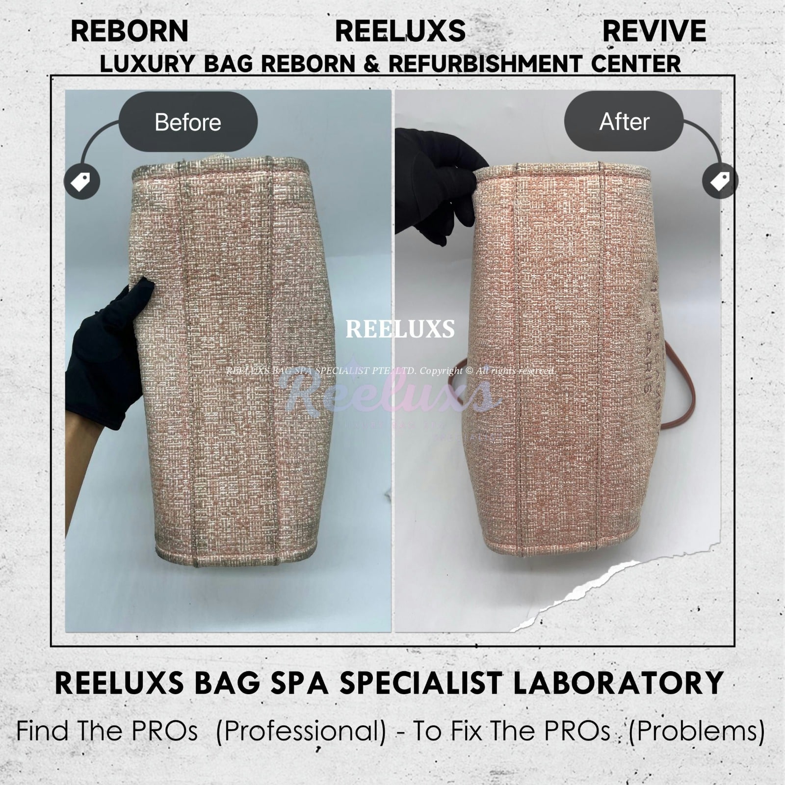 At Reeluxs Bag Spa Specialists , we bring your luxury bags back to their best form. Boasting a rich legacy and credentials from France and Germany, we are experts in reborn your beloved luxury items. Entrust your accessories to a top-ranking specialist, recognized for our advanced craftsmanship skills and over two decades of dedicated craftsmanship. Your beloved bags deserve nothing less than our expert care ,restoration and refurbishment .
