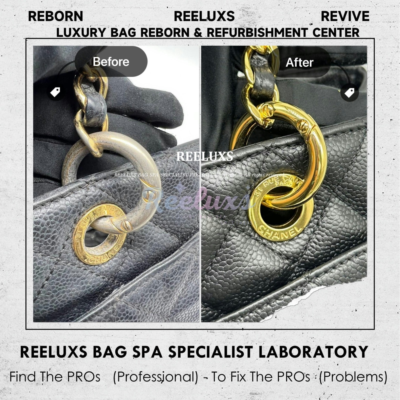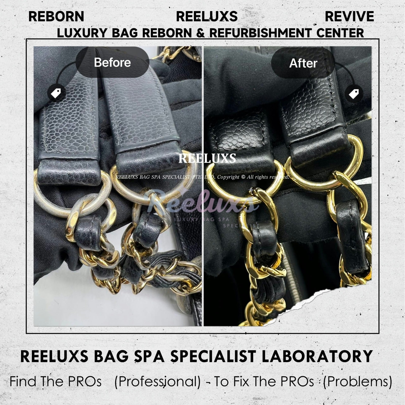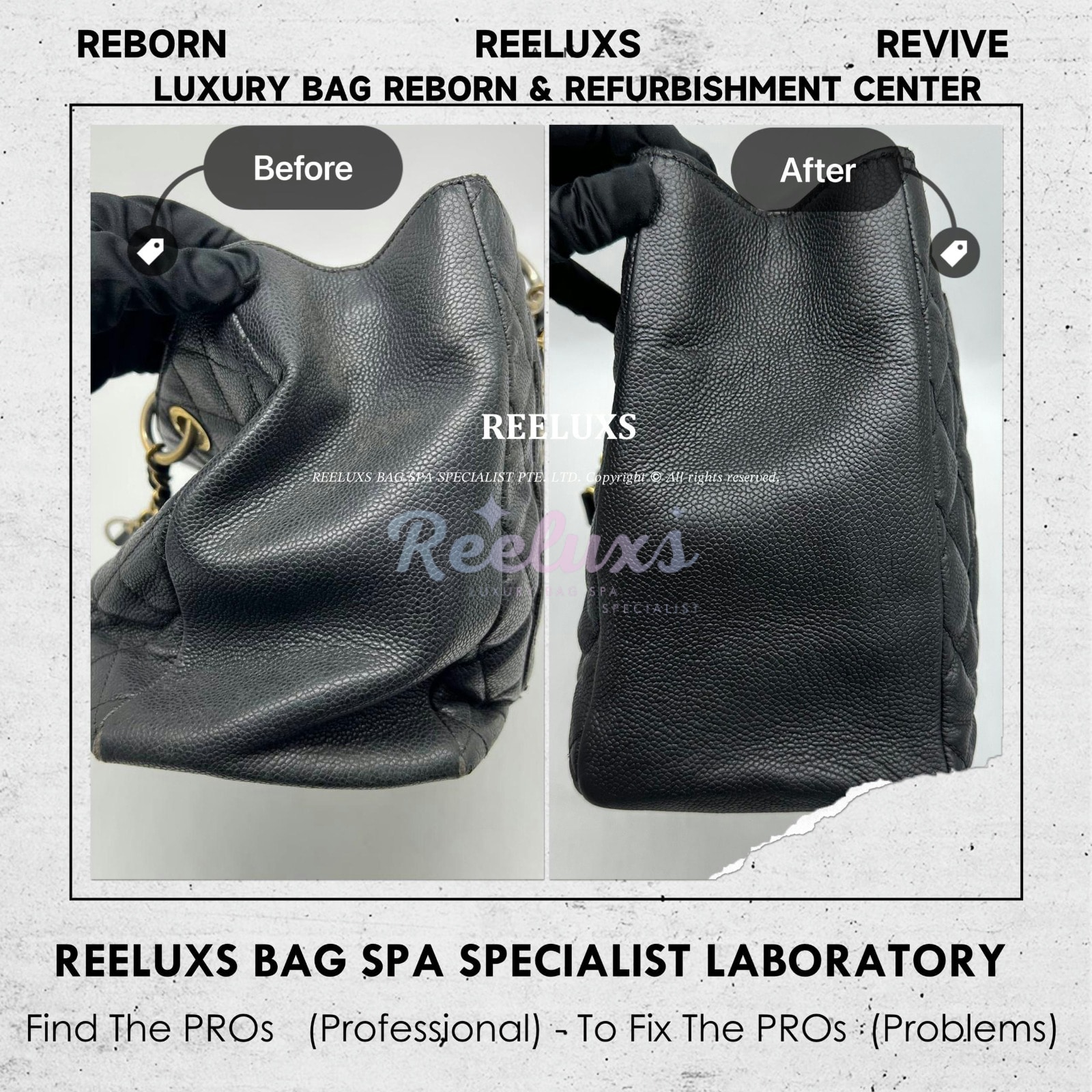 At Reeluxs Bag Spa Specialists , we bring your luxury bags back to their best form. Boasting a rich legacy and credentials from France and Germany, we are experts in reborn your beloved luxury items. Entrust your accessories to a top-ranking specialist, recognized for our advanced craftsmanship skills and over two decades of dedicated craftsmanship. Your beloved bags deserve nothing less than our expert care ,restoration and refurbishment .
