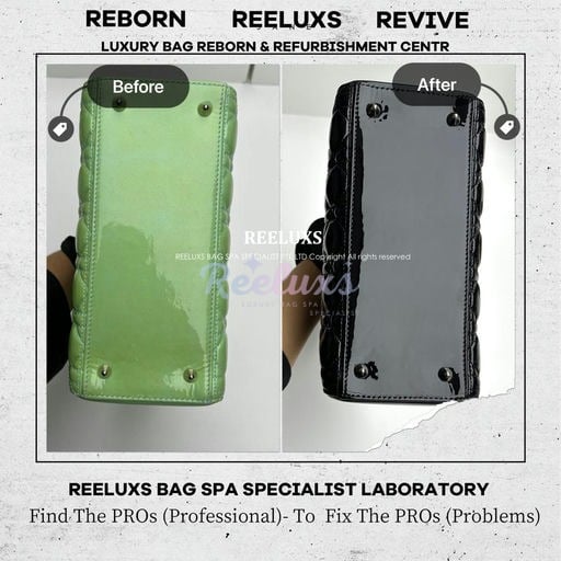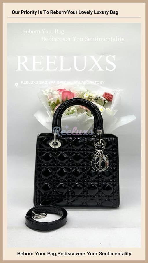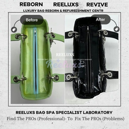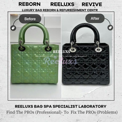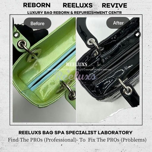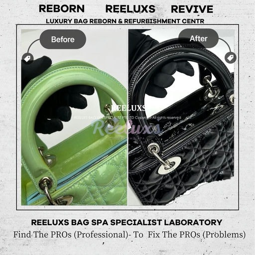 DIOR Lady Dior Patent Leather Handbag Patent Color Damaged Oxidation Change To Black Color Refurbishment