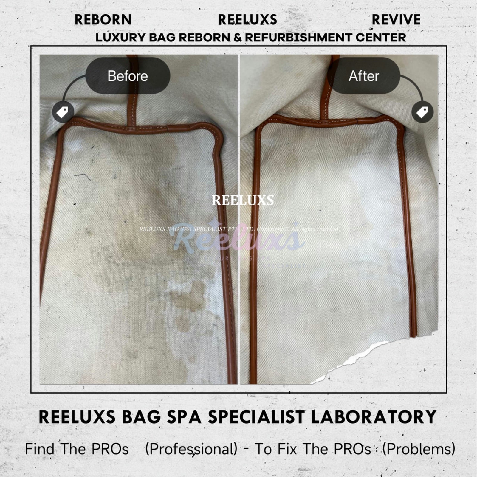 Reeluxs Bag Spa Specialists is your right choice for luxury handbag care. Trust us to perform miracles on your handbags. As the most authoritative and professional luxury bag spa care service in Malaysia and Singapore, Reeluxs Bag Spa Specialist is the trusted bag spa laboratory for caring for your favorite luxury designer bags, featuring France & German certified advanced technology and a reputation for excellent craftsmanship with qualified bag spa chemicals.
