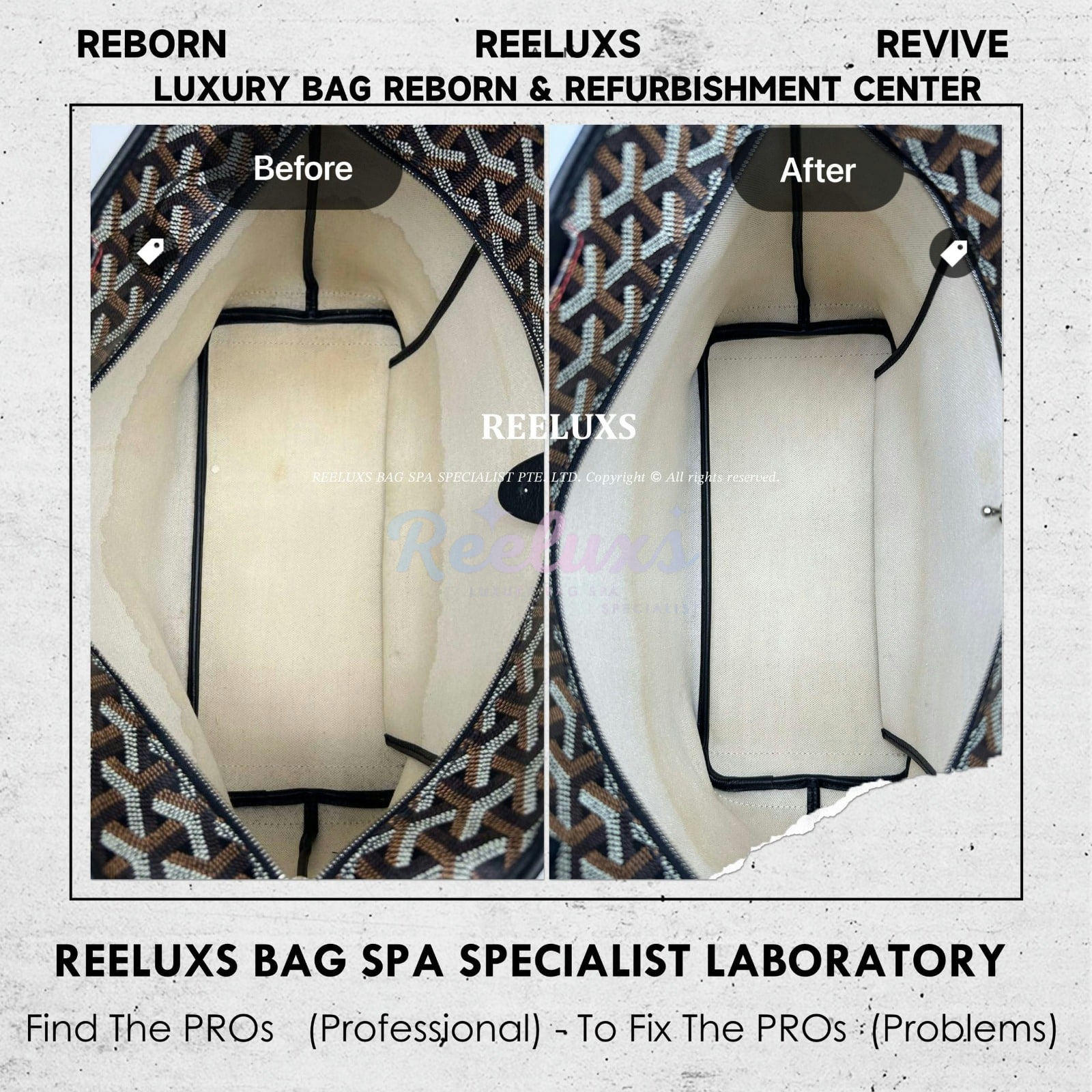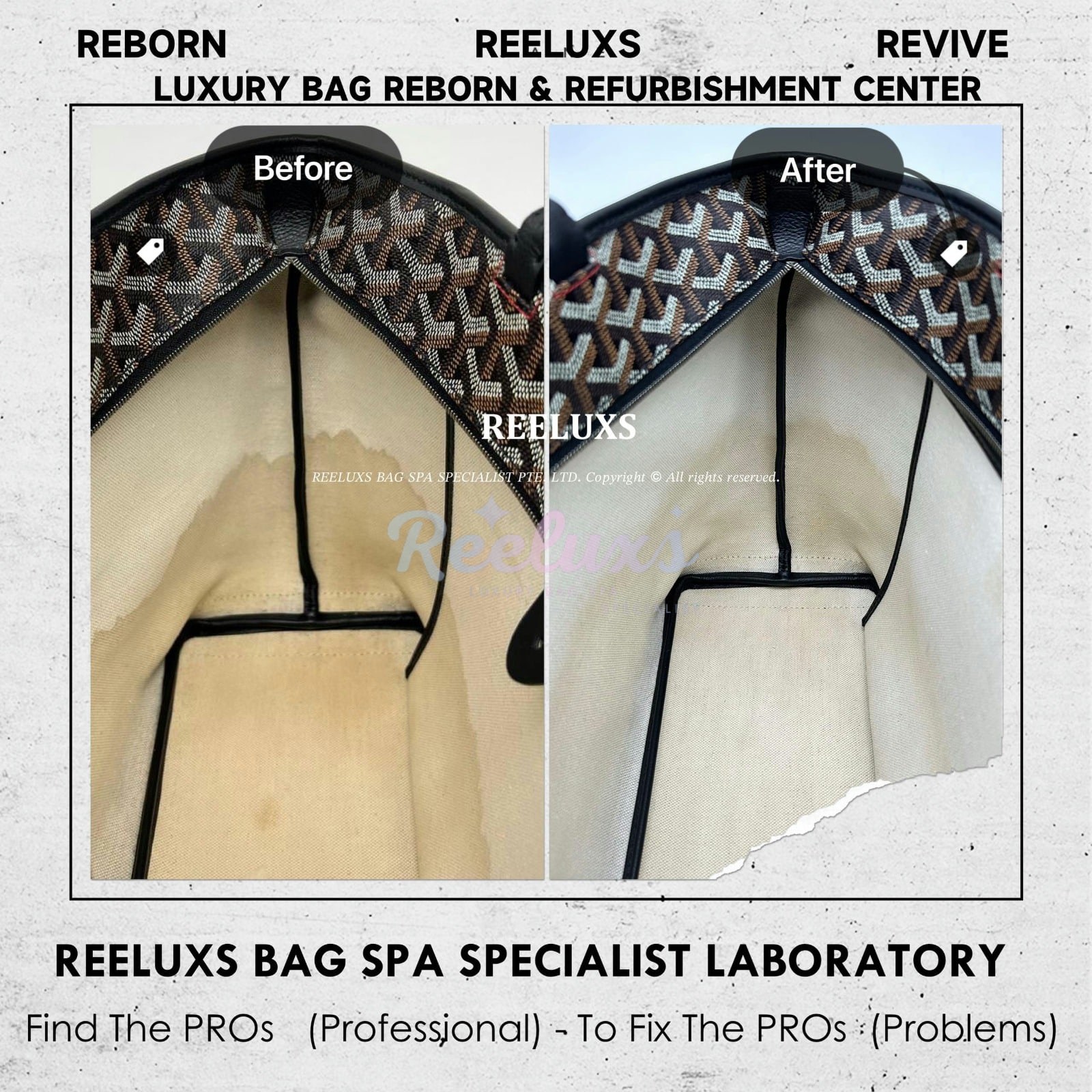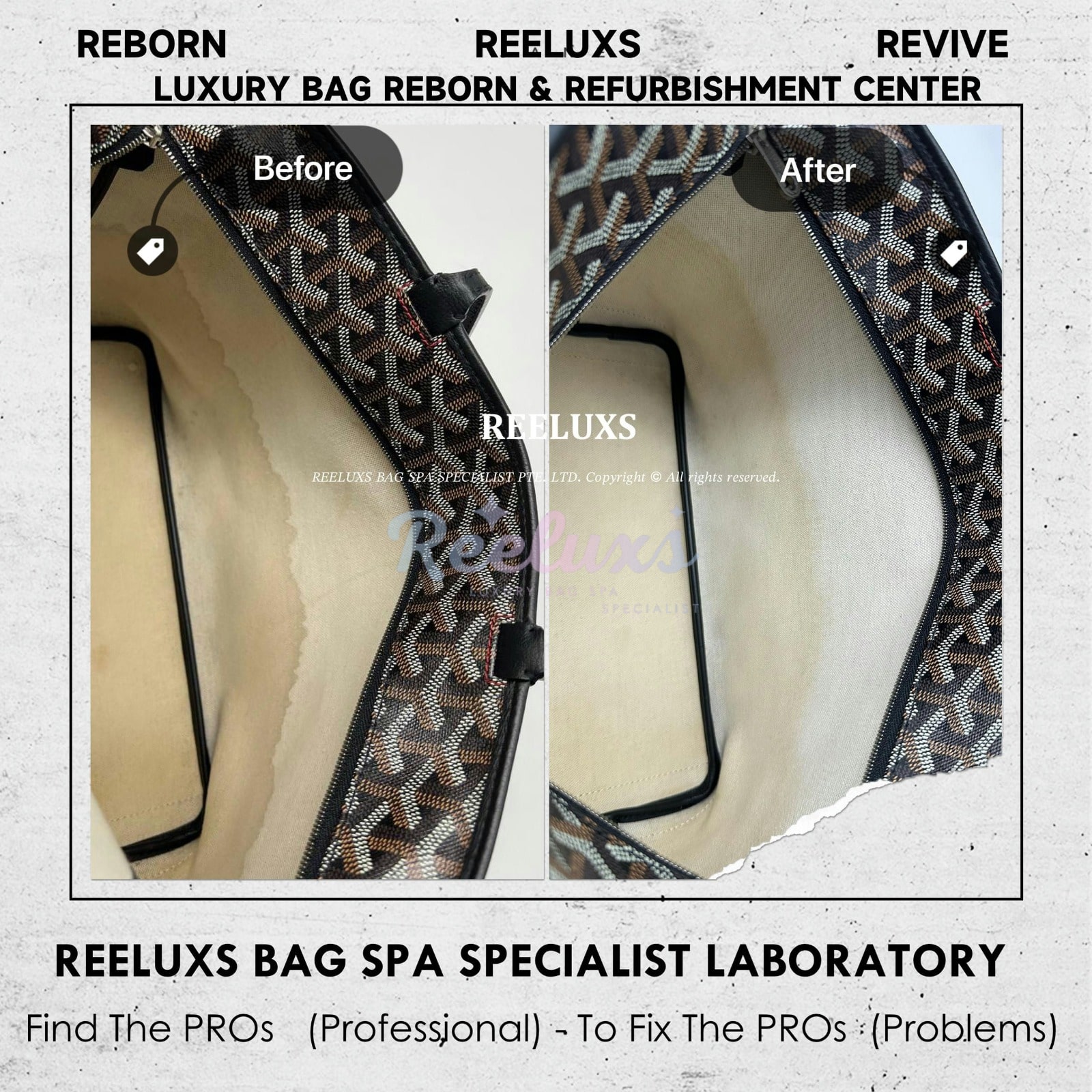 Reeluxs Bag Spa Specialists is your right choice for luxury handbag care. Trust us to perform miracles on your handbags. As the most authoritative and professional luxury bag spa care service in Malaysia and Singapore, Reeluxs Bag Spa Specialist is the trusted bag spa laboratory for caring for your favorite luxury designer bags, featuring France & German certified advanced technology and a reputation for excellent craftsmanship with qualified bag spa chemicals.
