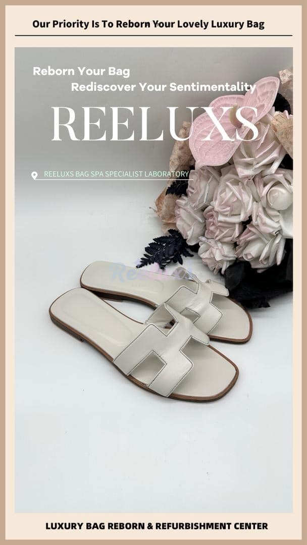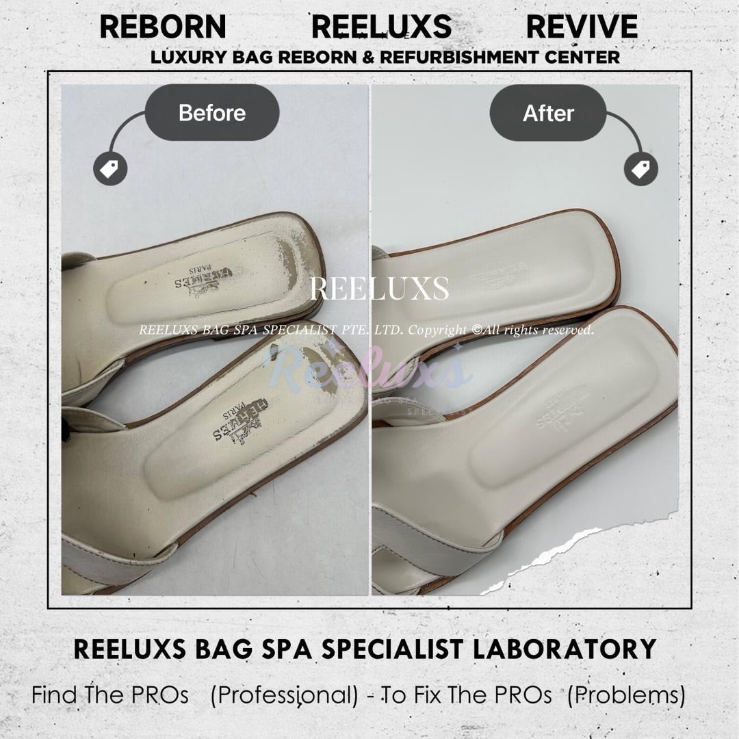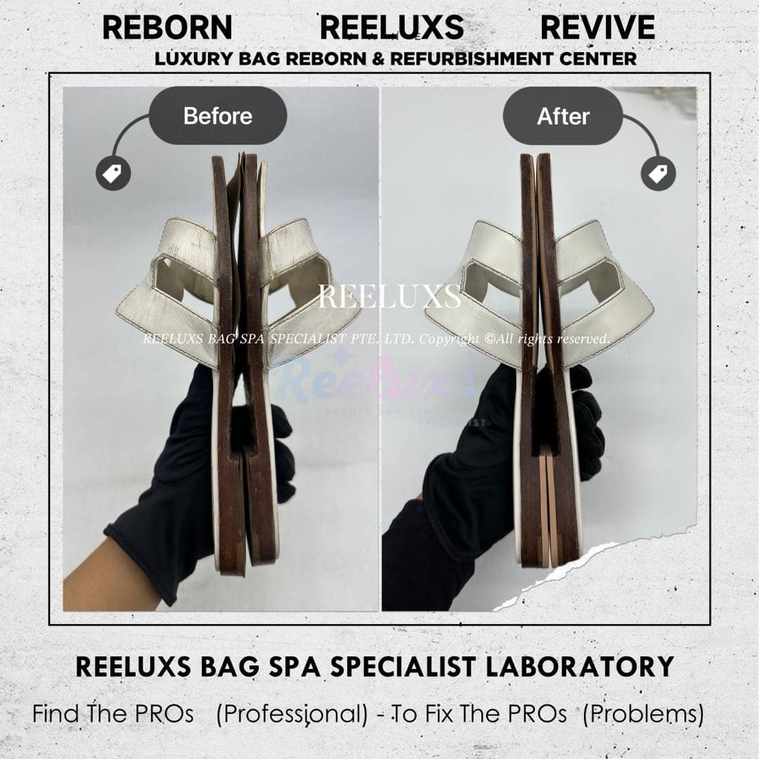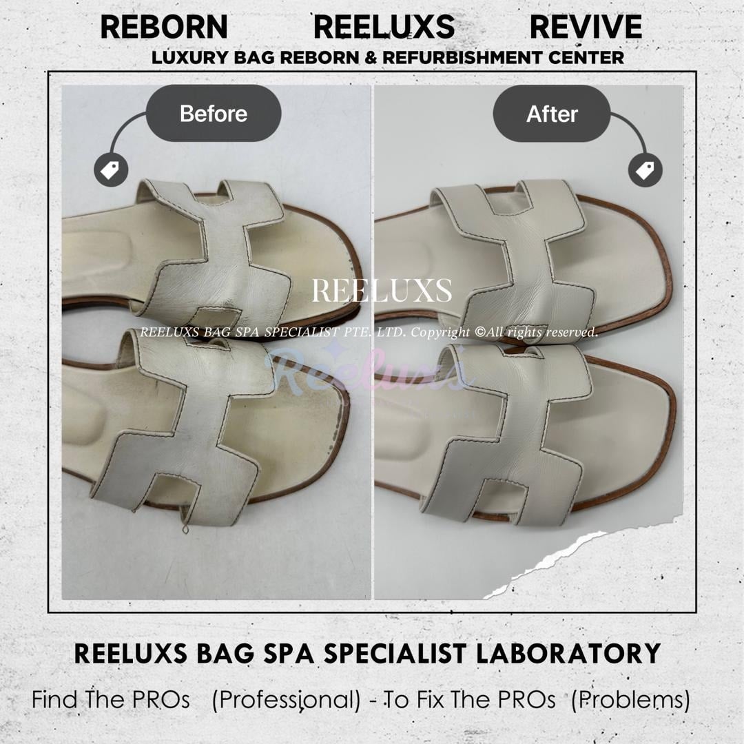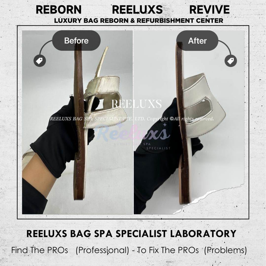 HERMES Oran Sandal Color Leather Faded Peel Off Side Sole Cracked & Damaged Sole Glue Damaged Refurbishment
