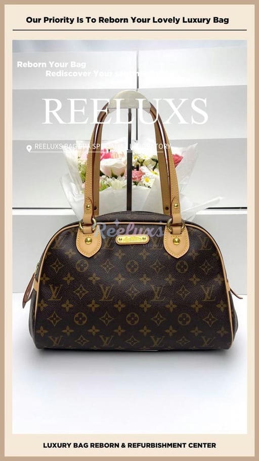 LOUIS VUITTON Montorgueil Shoulder Bag Zip Puller Lost Inner Trim Fabric Broken Vachetta Fully Stain & Damaged Refurbishment