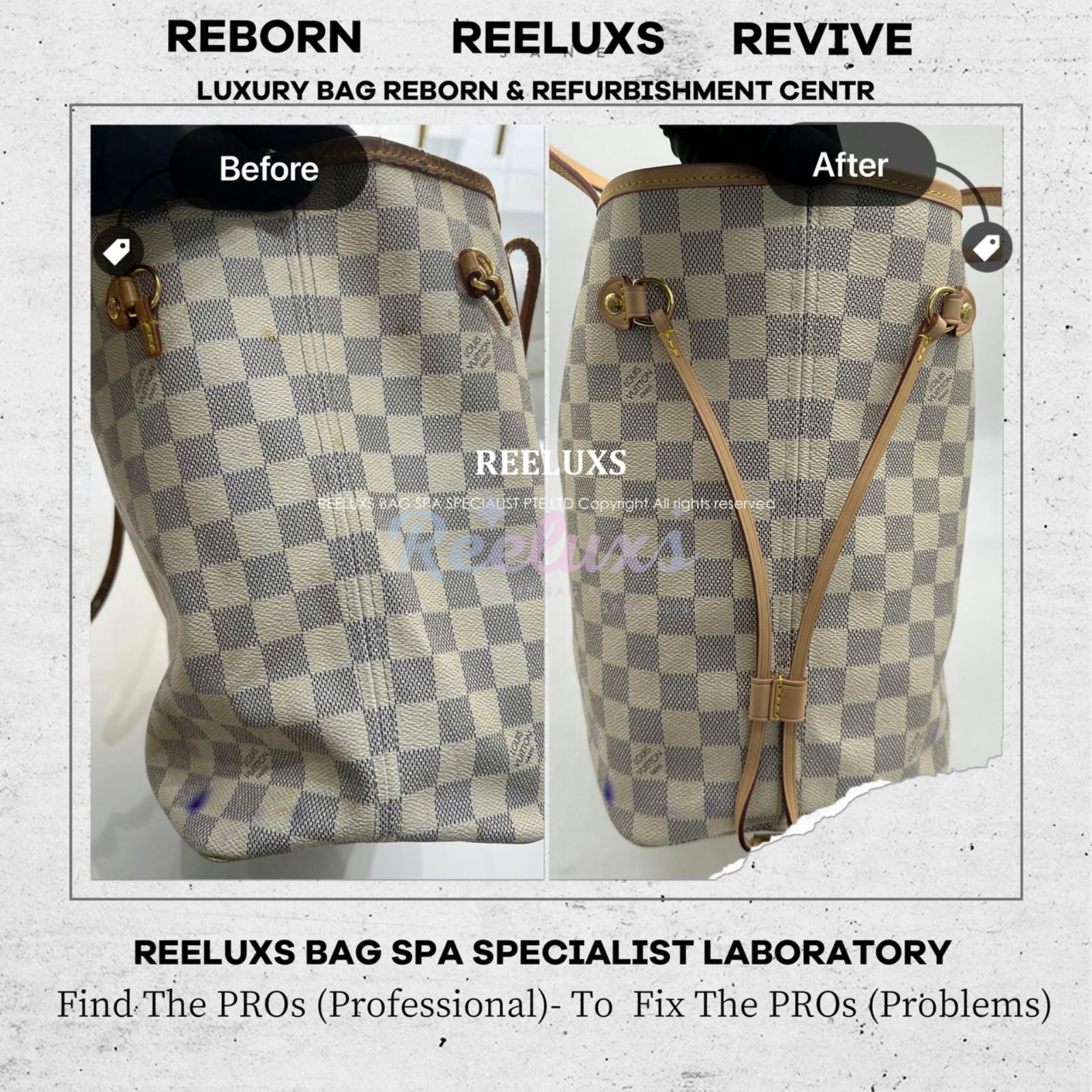 Reeluxs Bag Spa Specialists is your right choice for luxury handbag care. Trust us to perform miracles on your handbags. As the most authoritative and professional luxury bag spa care service in Malaysia and Singapore, Reeluxs Bag Spa Specialist is the trusted bag spa laboratory for caring for your favorite luxury designer bags, featuring France & German certified advanced technology and a reputation for excellent craftsmanship with qualified bag spa chemicals.