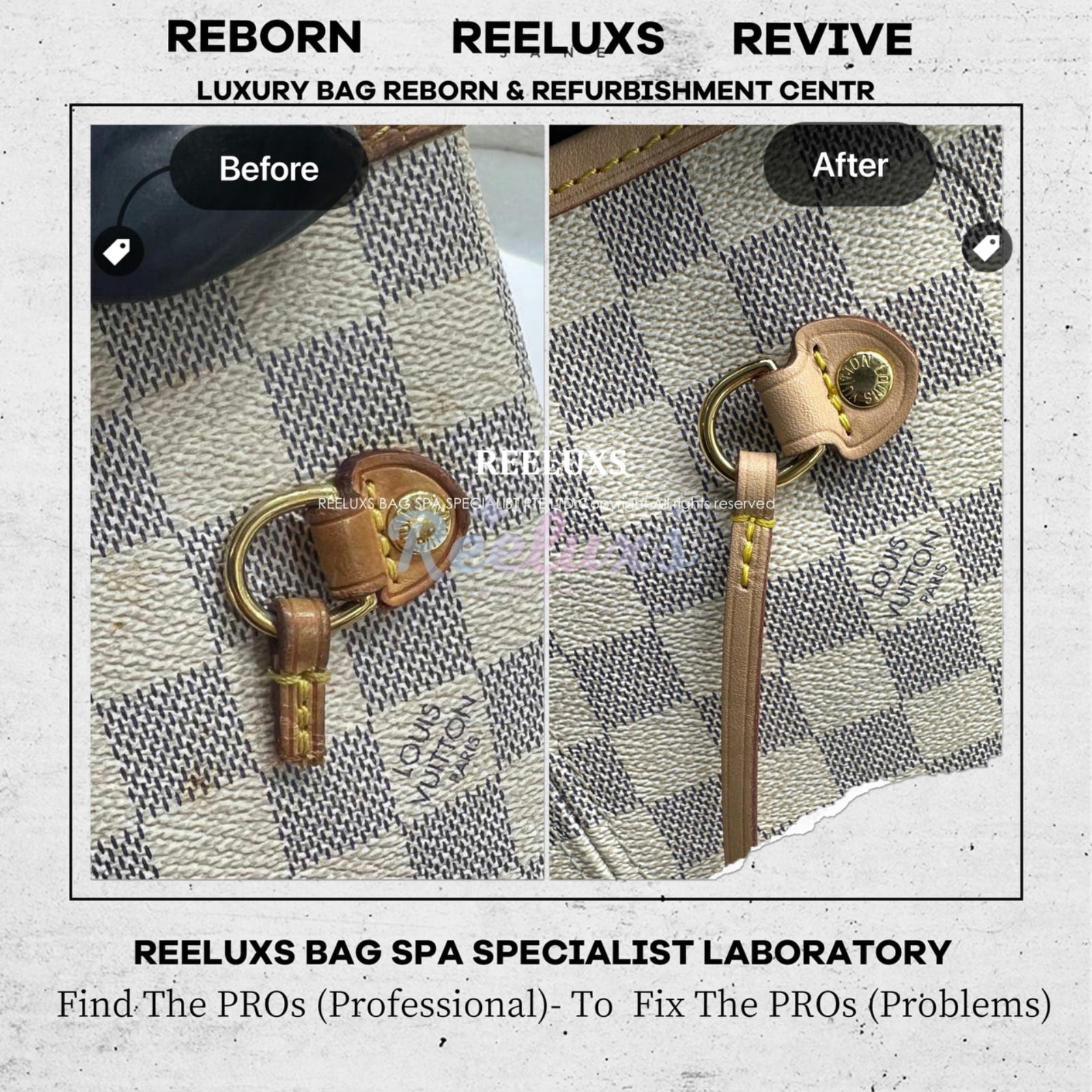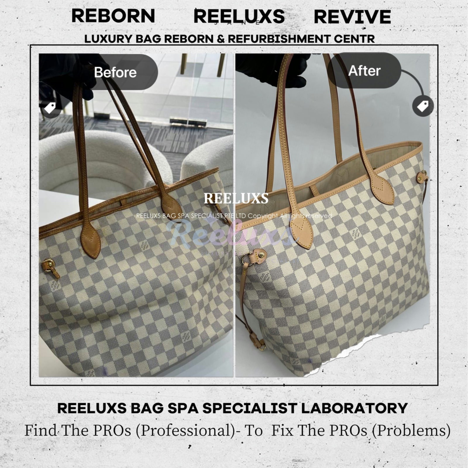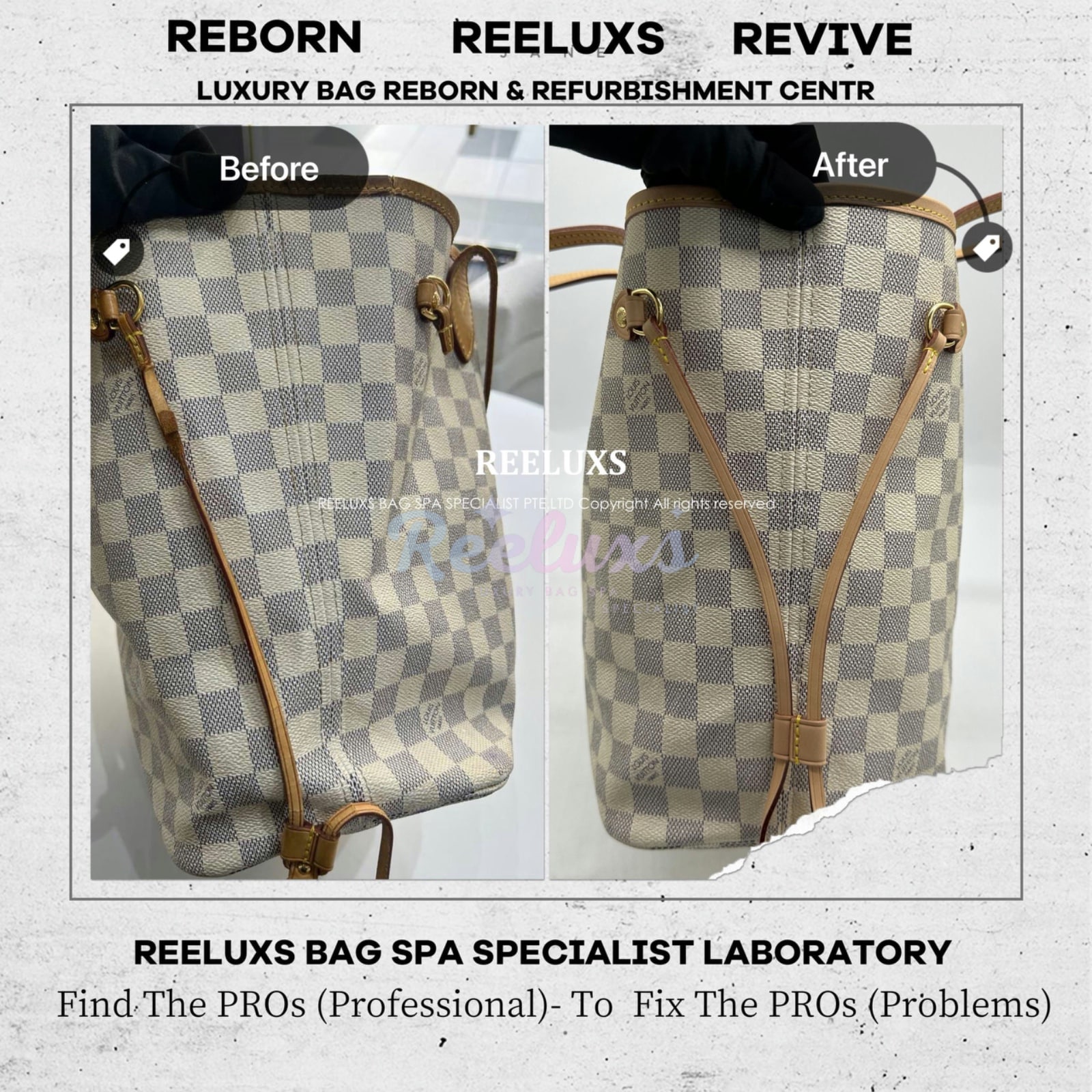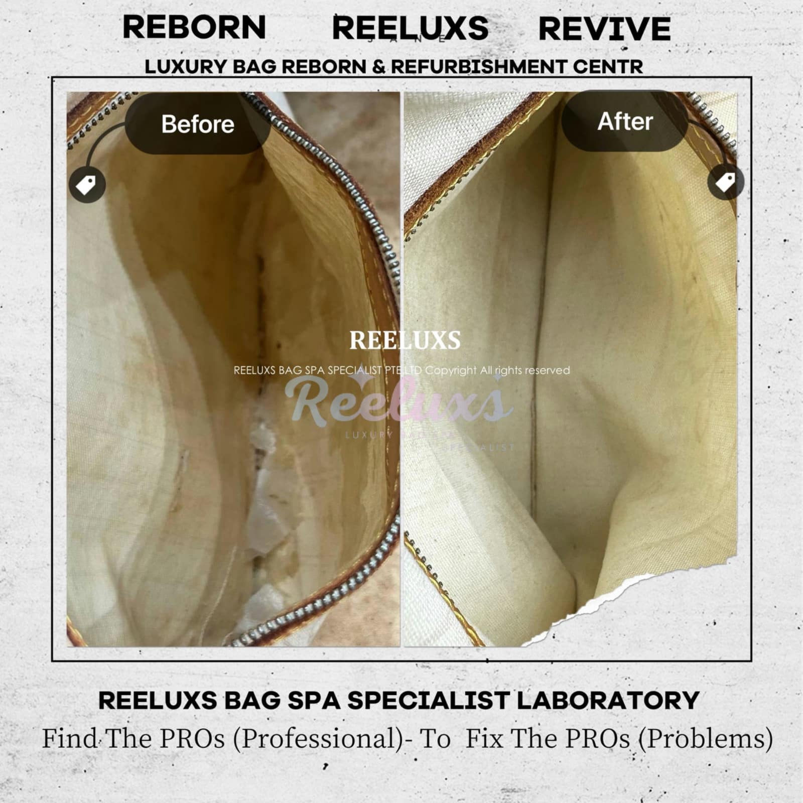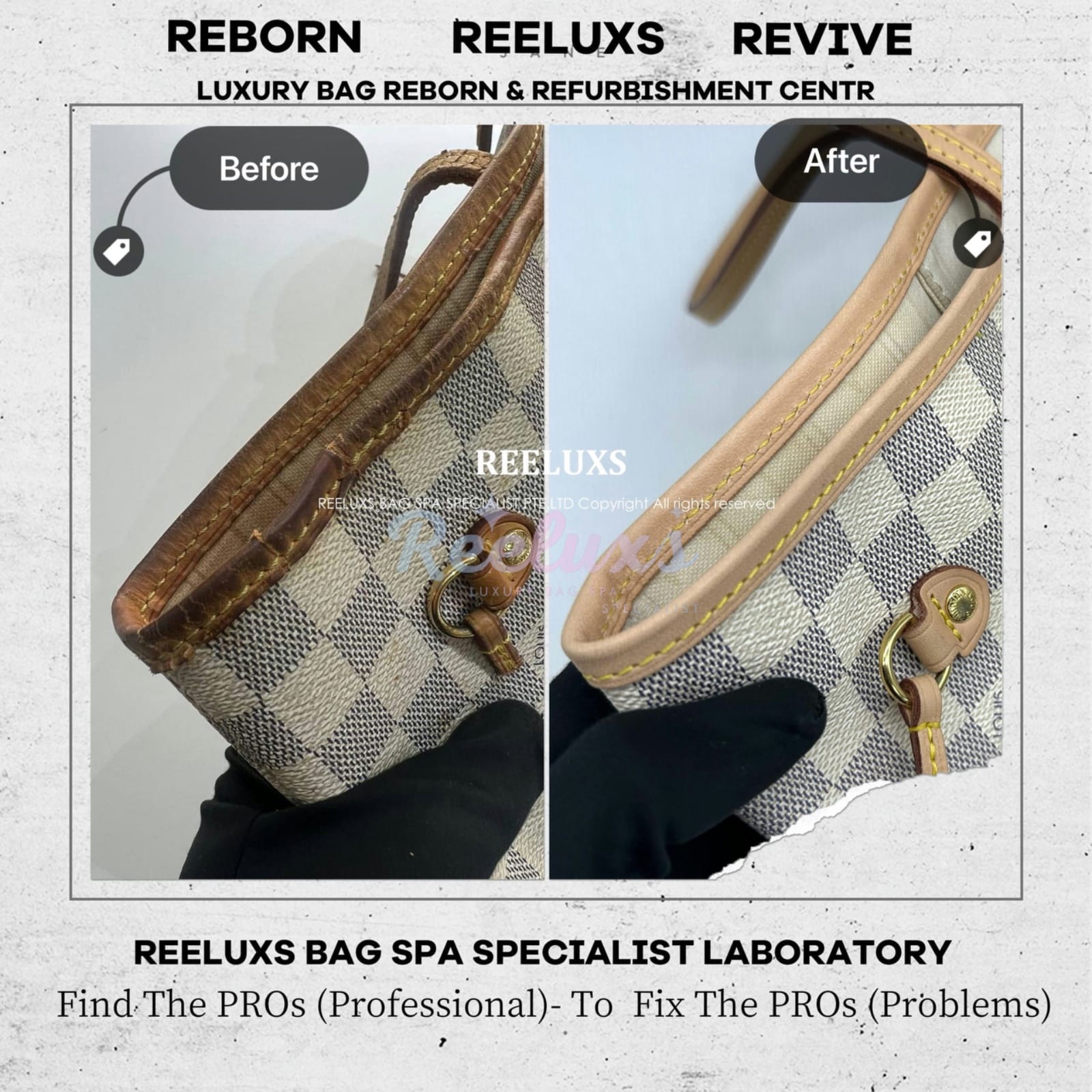 At Reeluxs Bag Spa Specialists , we bring your luxury bags back to their best form. Boasting a rich legacy and credentials from France and Germany, we are experts in reborn your beloved luxury items. Entrust your accessories to a top-ranking specialist, recognized for our advanced craftsmanship skills and over two decades of dedicated craftsmanship. Your beloved bags deserve nothing less than our expert care ,restoration and refurbishment .