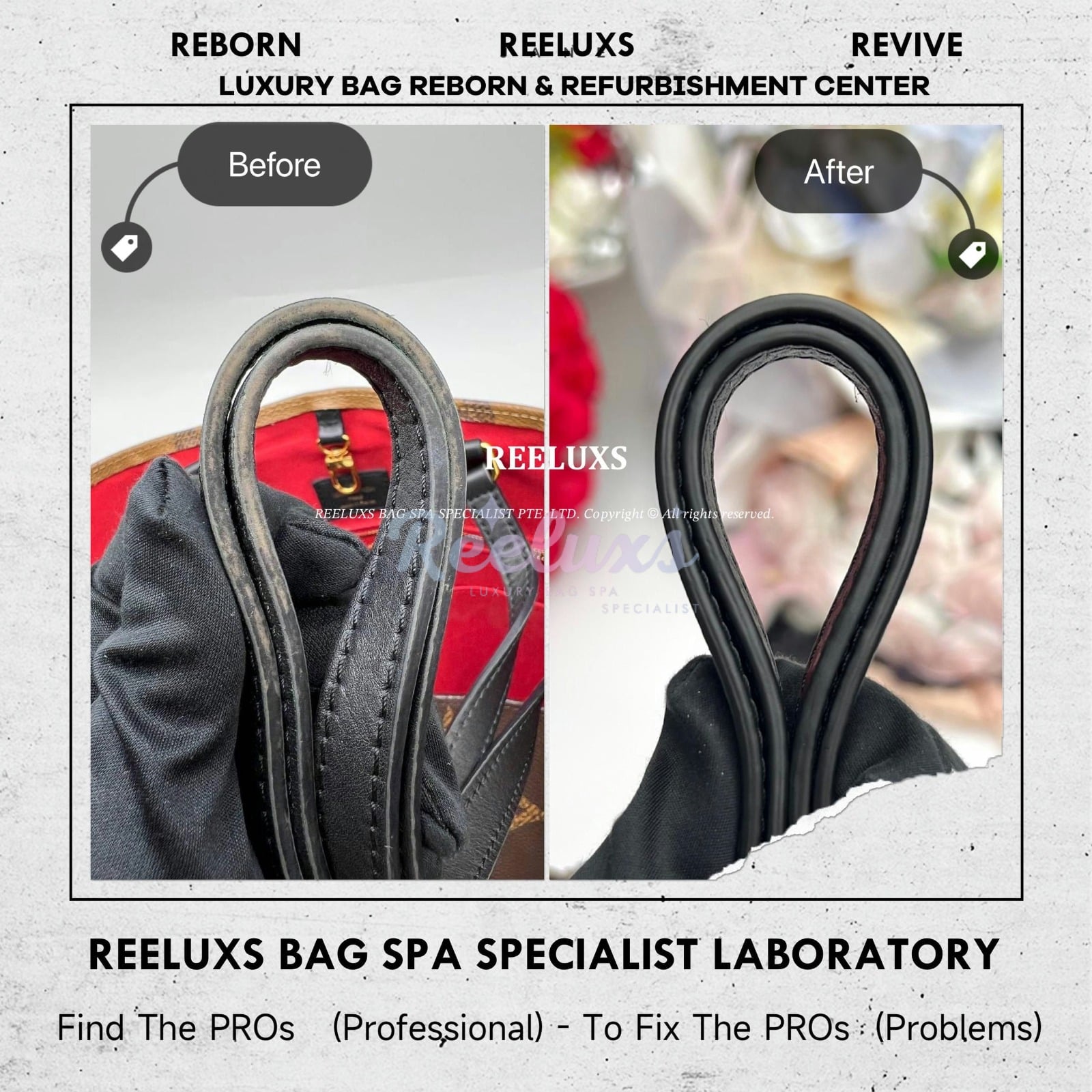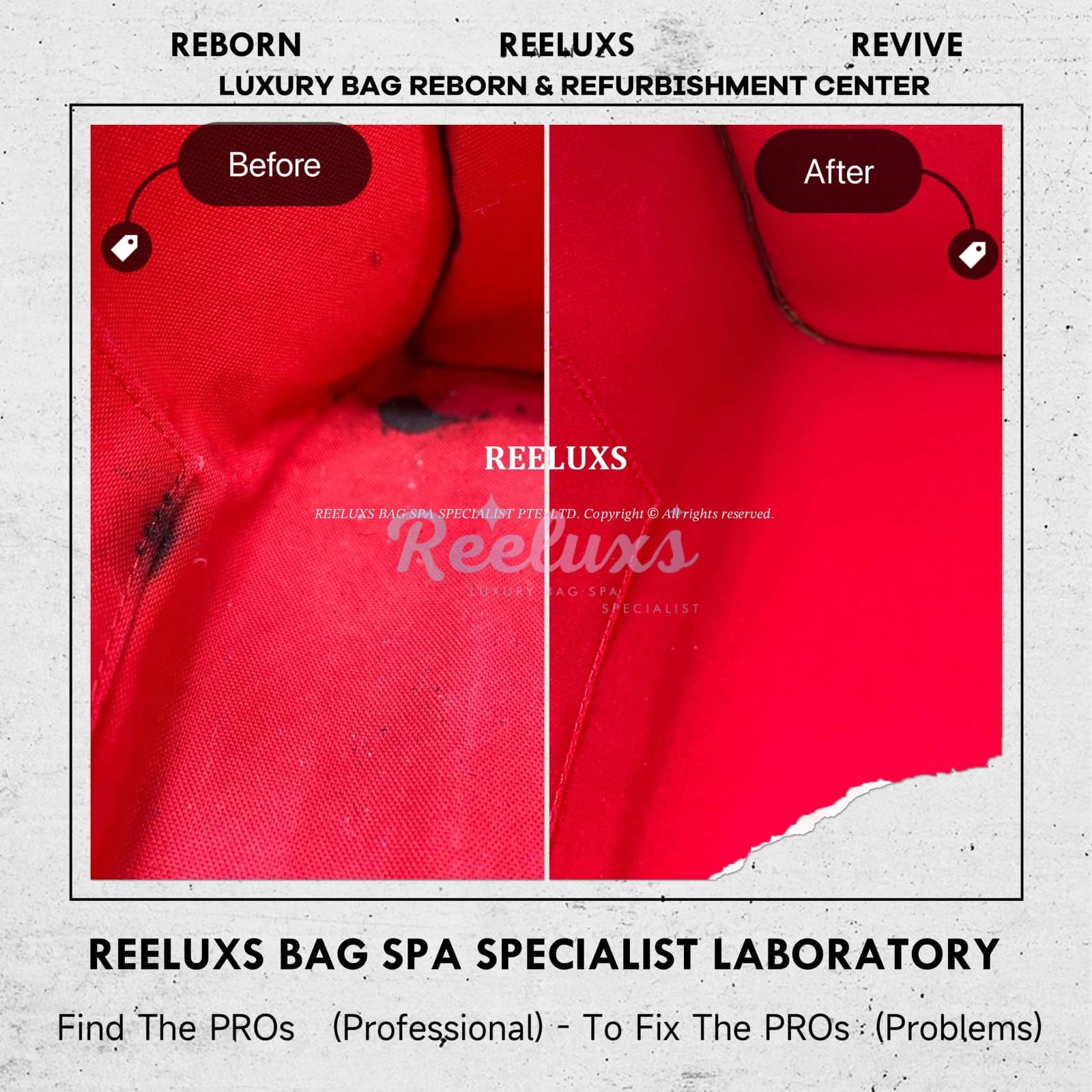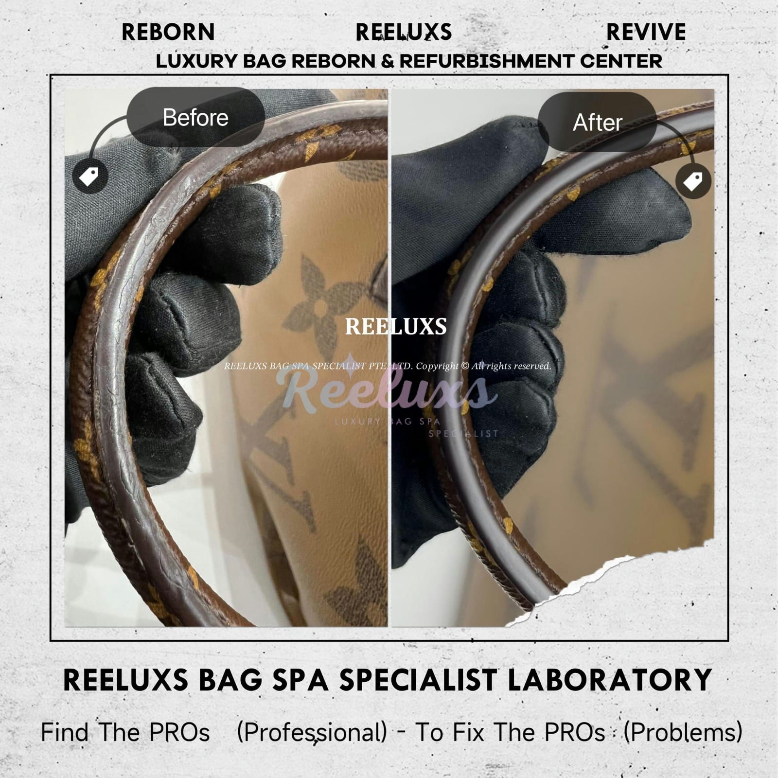 At Reeluxs Bag Spa Specialists , we bring your luxury bags back to their best form. Boasting a rich legacy and credentials from France and Germany, we are experts in reborn your beloved luxury items. Entrust your accessories to a top-ranking specialist, recognized for our advanced craftsmanship skills and over two decades of dedicated craftsmanship. Your beloved bags deserve nothing less than our expert care ,restoration and refurbishment .