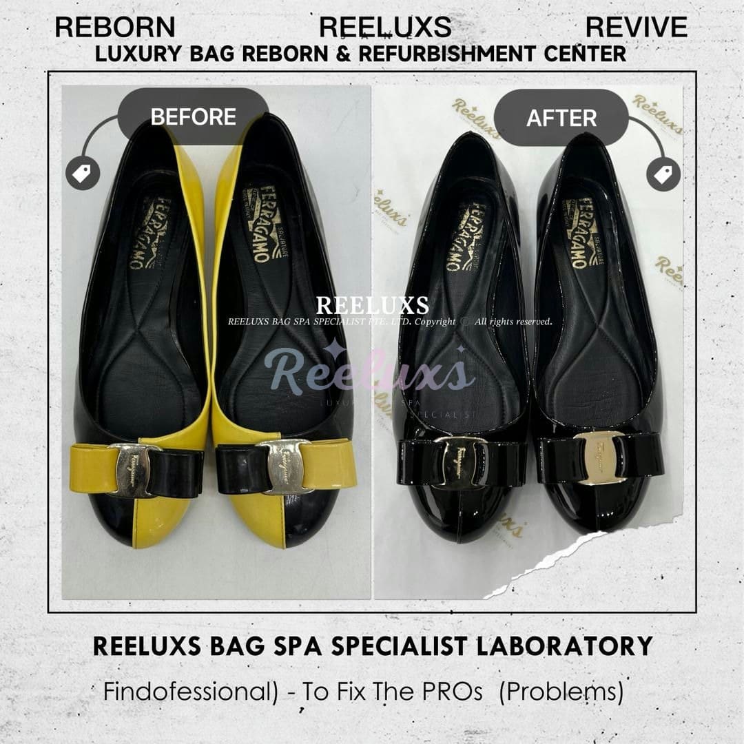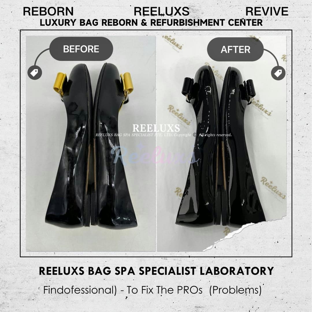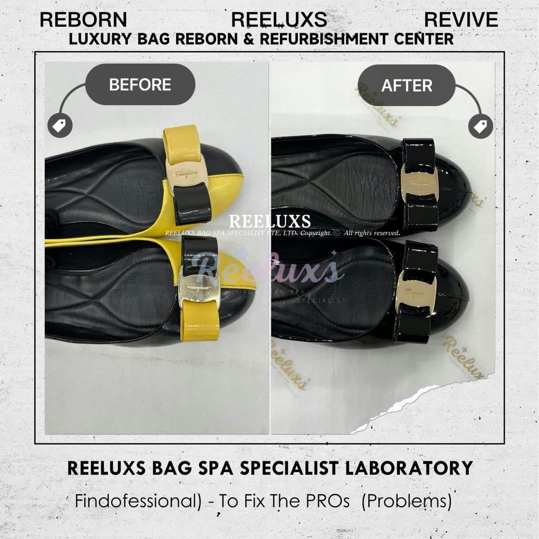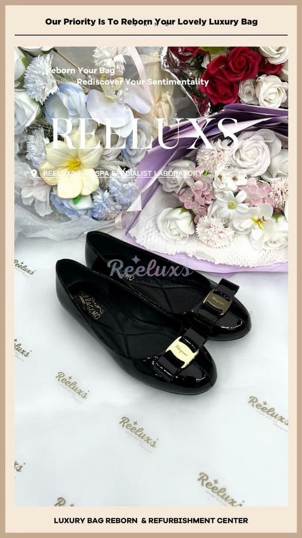 SALVATORE FERRAGAMO Varina Ballet Flats Patent Color Faded, Dullnes Restoration